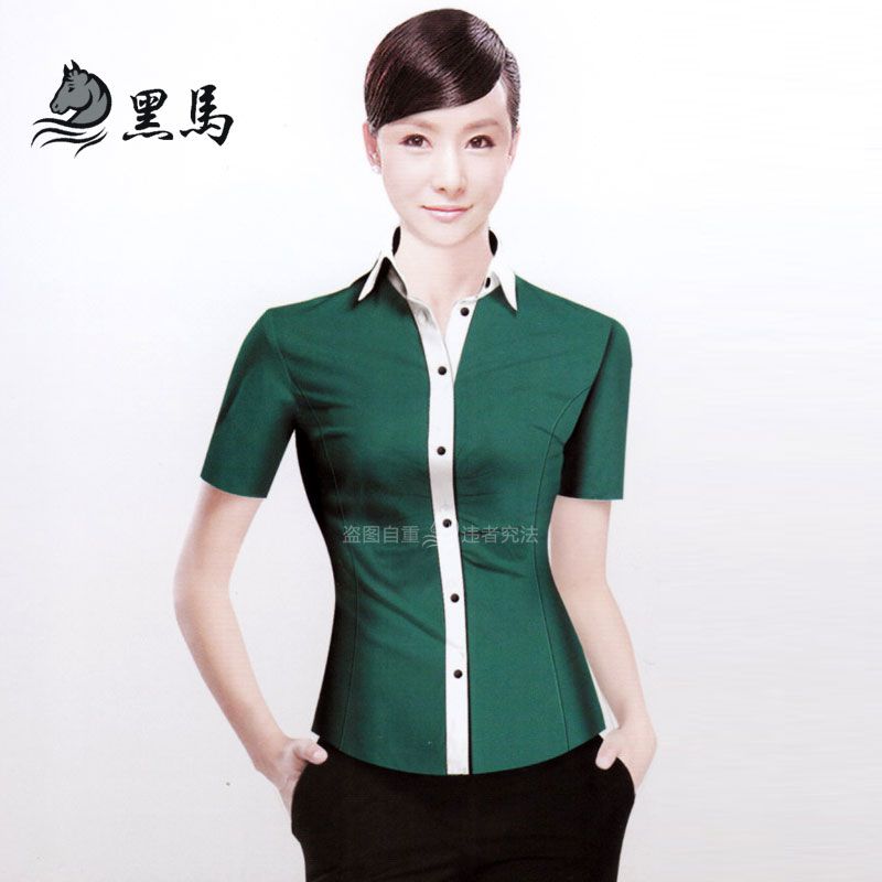 藍(lán)色標(biāo)準(zhǔn)領(lǐng)女士短袖襯衫